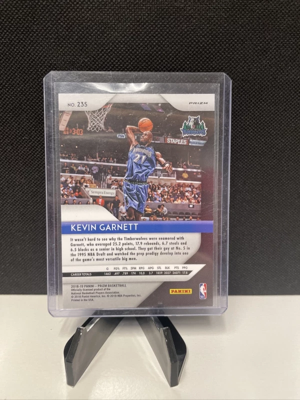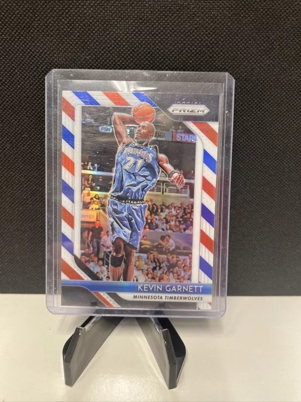 This Kevin Garnett 2018 Panini Prizm #235 Red White and Blue Prizm card is a must-have for any basketball fan. Featuring the legendary Minnesota Timberwolves player, this original sports trading card is made of high-quality card stock and is perfect for adding to your collection.