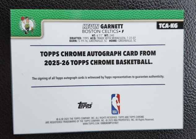 2025-26 TOPPS CHROME KEVIN GARNETT AUTOGRAPH.