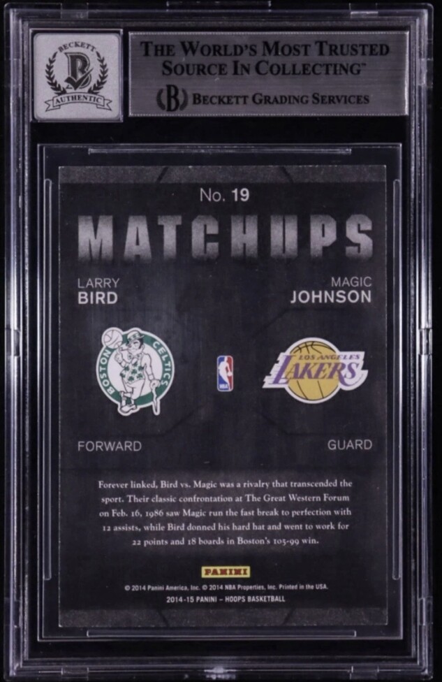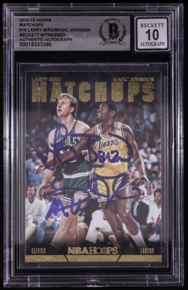 Larry Bird & Magic Johnson Signed 2014-15 Hoops Matchups #19 BGS Auto 10