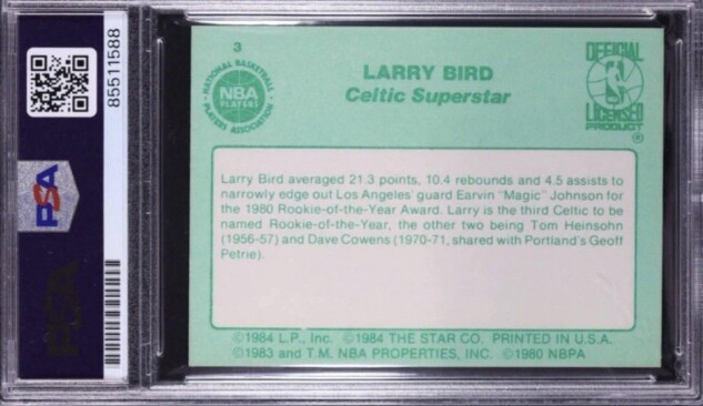 Larry Bird Signed 1984 Star Larry Bird #3, PSA Auto 10