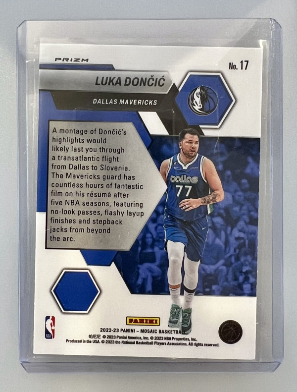 Luka Doncic 2022-23 Panini Mosaic #17 Montage Silver Prizm. Near Mint to Mint Condition.