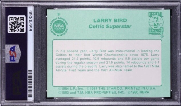 Magic Johnson & Larry Bird Signed 1984 Star Larry Bird #8, Psa Auto 10