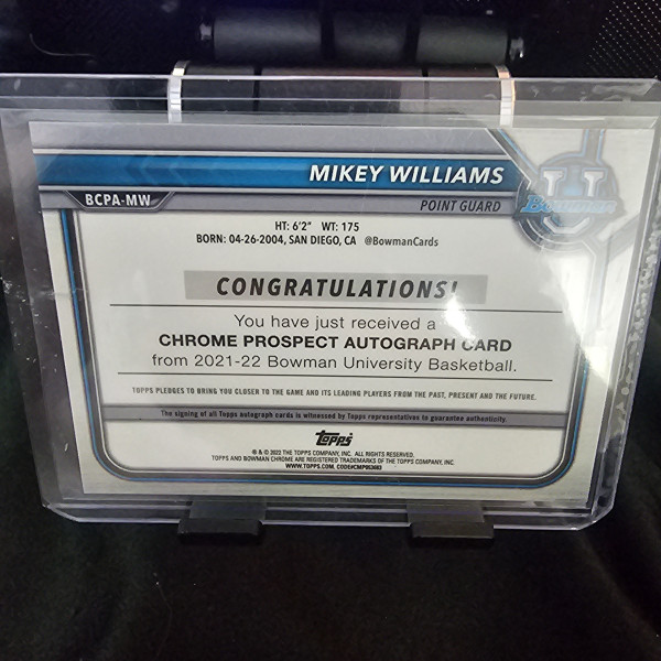 Mikey Williams 2021-22 Bowman Chrome U Refractor 1st Auto Autograph