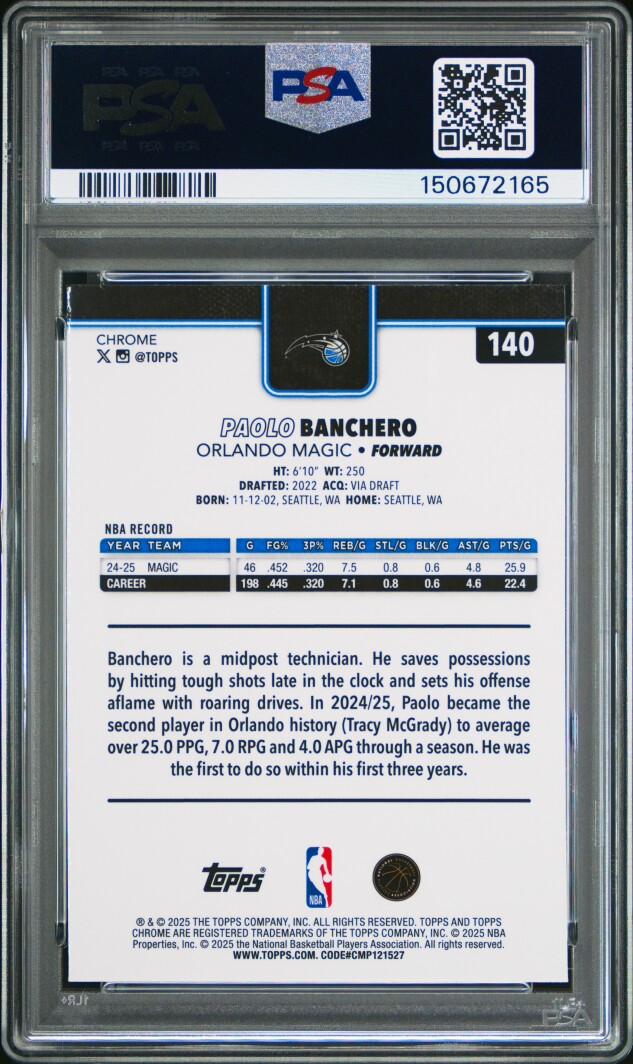 Paolo Banchero 2025-26 Topps Chrome #140 Basketball Refractor PSA10 GEM MT