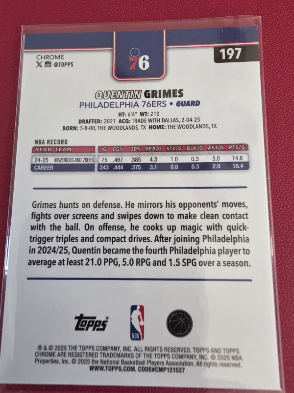 Quentin Grimes 2025 Topps Chrome Gold/50