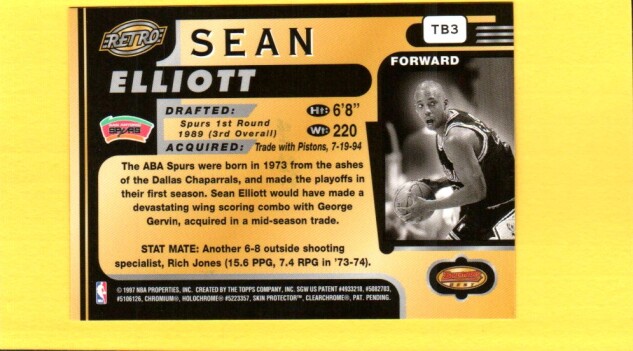 Sean Elliott #TB3 1996 Bowman's Best Retro