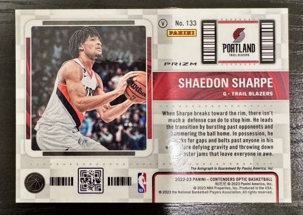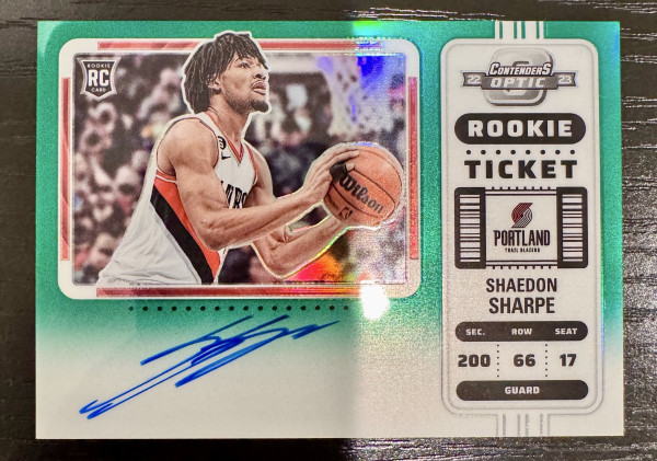 Shaedon Sharpe 22-23 Contenders Optic Green Rookie Ticket Auto /75 Very clean card!
