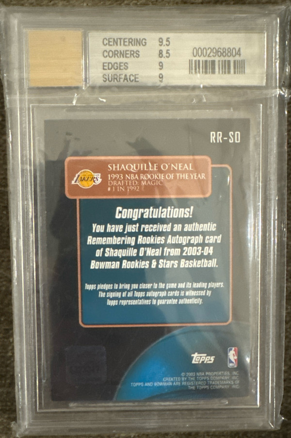 Shaquille Oneal Remembering Rookies Auto On Card