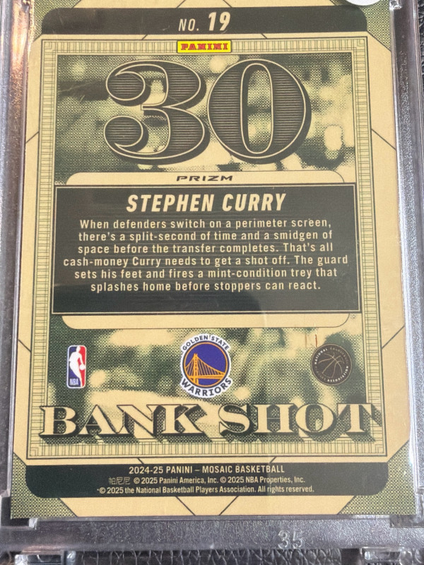 Iconic โ€œBang!โ€ insert of Stephen Curry from Panini Mosaic ๐Ÿ”ฅโ€”a fan-favorite design celebrating one of the greatest shooters of all time. The cracked-ice style shine pops hard and itโ€™s already protected in a magnetic one-touch.