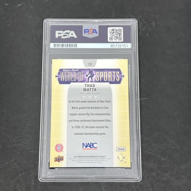 This listing features a 2011 Upper Deck #70 Thad Matta, professionally PSA authenticated.