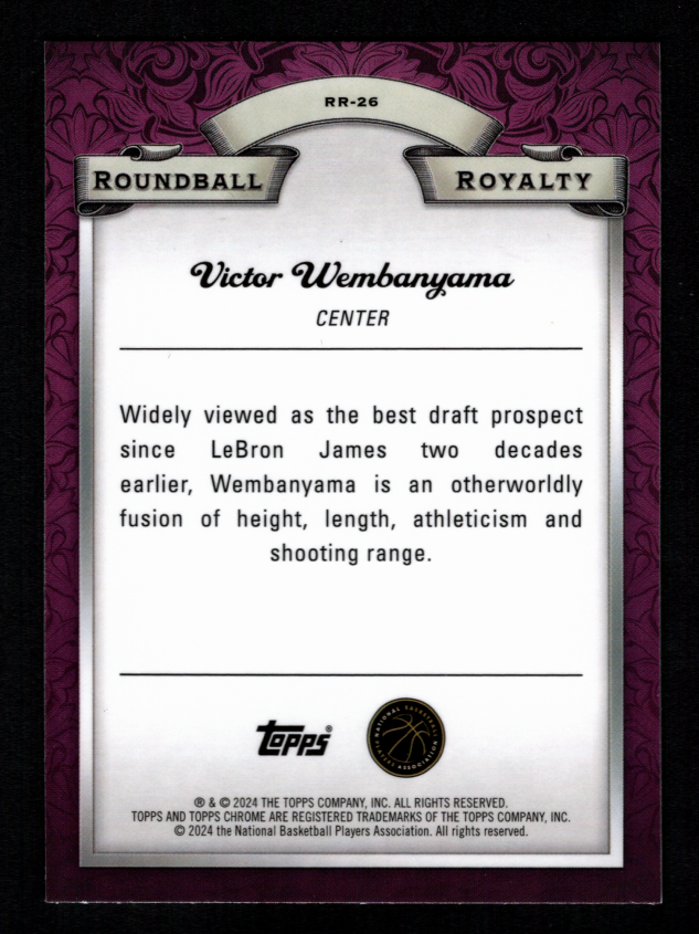 Victor Wembanyama 2024 Topps Chrome #RR-26 Roundball Royalty Refractor RC Spurs