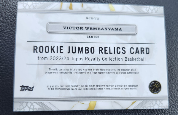 23-24 TOPPS ROYALTY VICTOR WEMBANYAMA RC BLUE JUMBO PLAYER WORN PATCH /25.