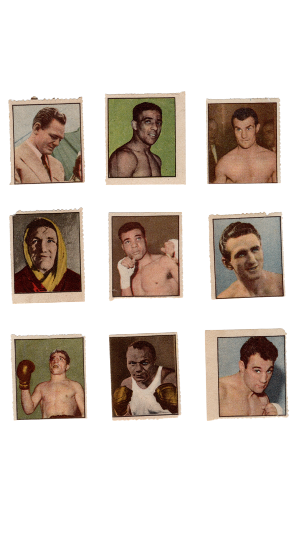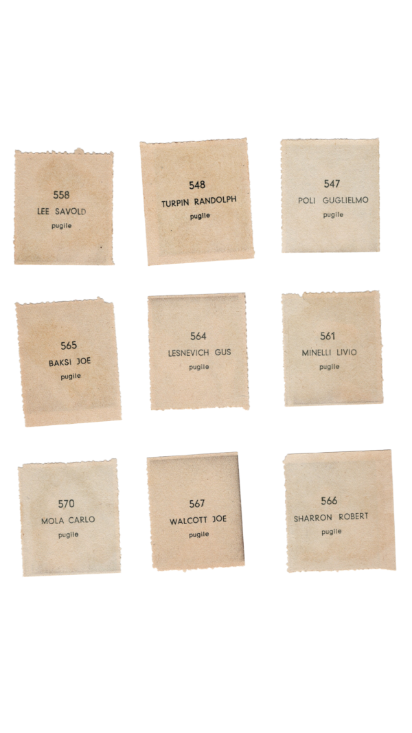 Lot of 9 Albosport Didasco Italian stamp cards featuring boxers. They measure 1.25" x 1.5"