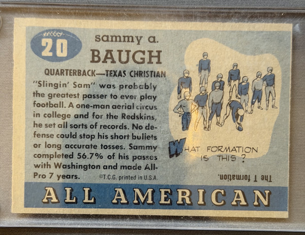 1955 Topps All-American #20 Sammy Baugh