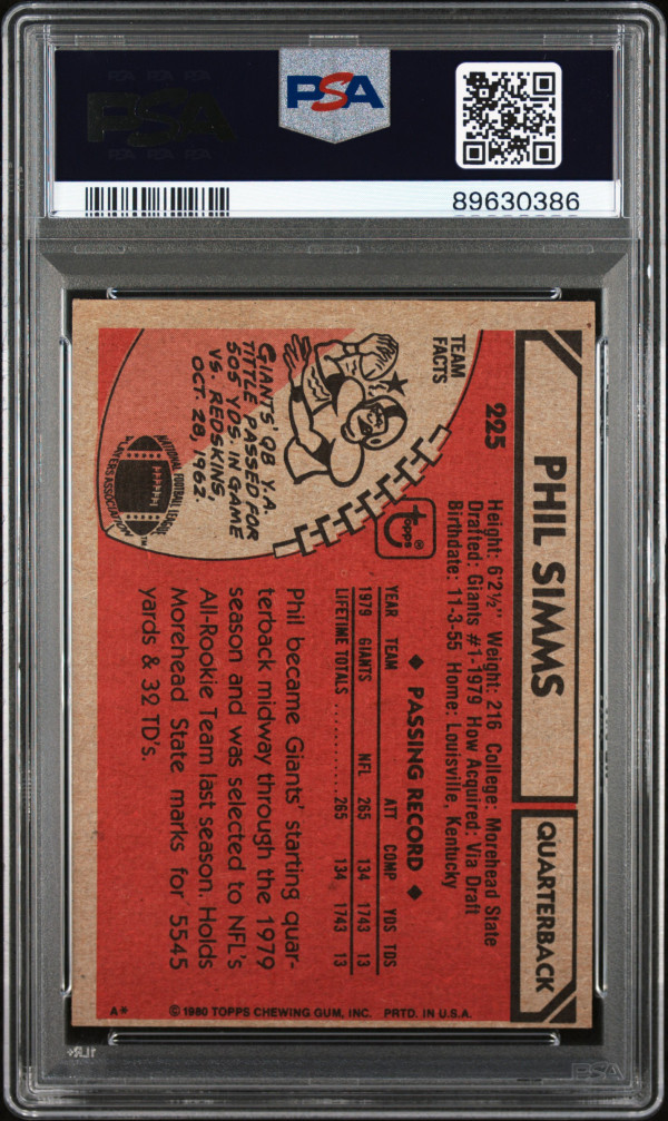 You are purchasing a 1980 Topps Phil Simms #225 Rookie PSA 5. You will receive the exact item in the photographs.