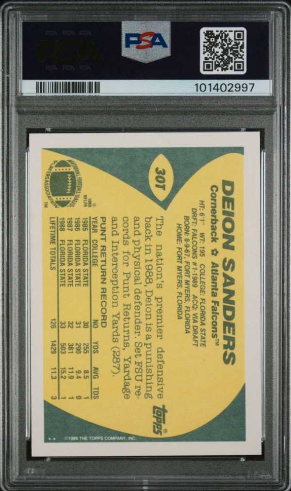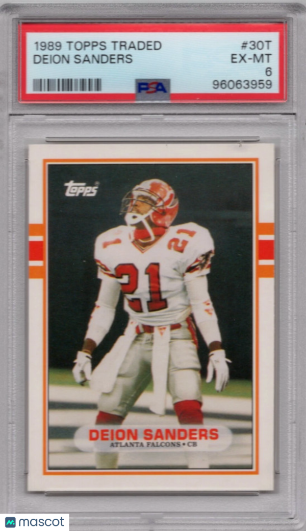 You are purchasing a 1989 Topps Traded Deion Sanders #30T [Base] Rookie Base Set PSA 6. You will receive the exact item in the photographs. Thank you for looking.
