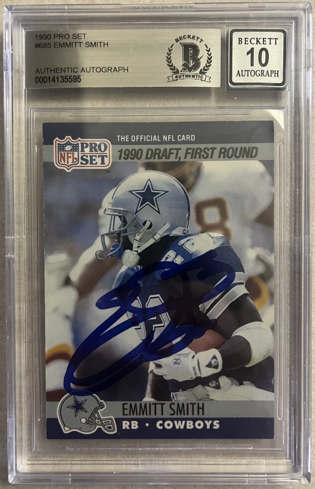 1990 Pro Set #685 Emmitt Smith RC Dallas Cowboys BGS Autograph 10