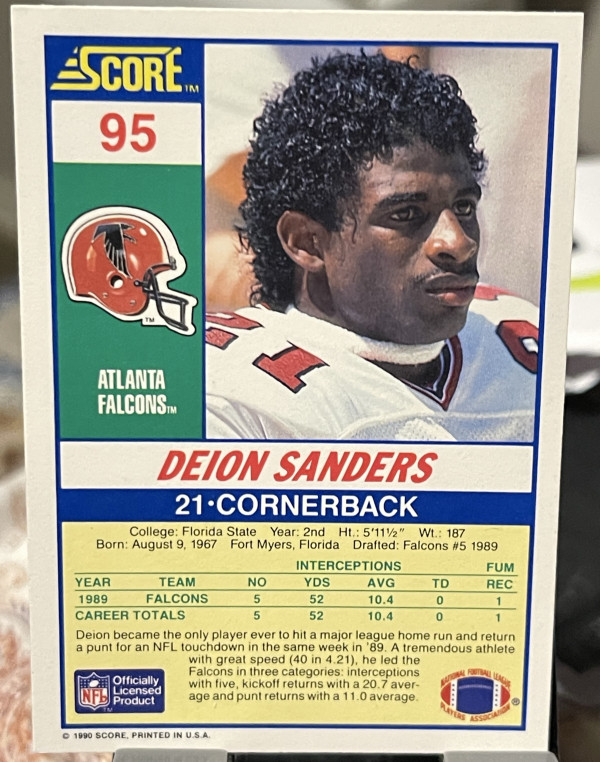 1990 Score - Deion Sanders #95 Rookie RC Atlanta Falcons