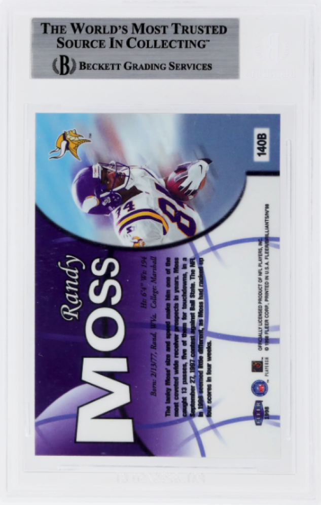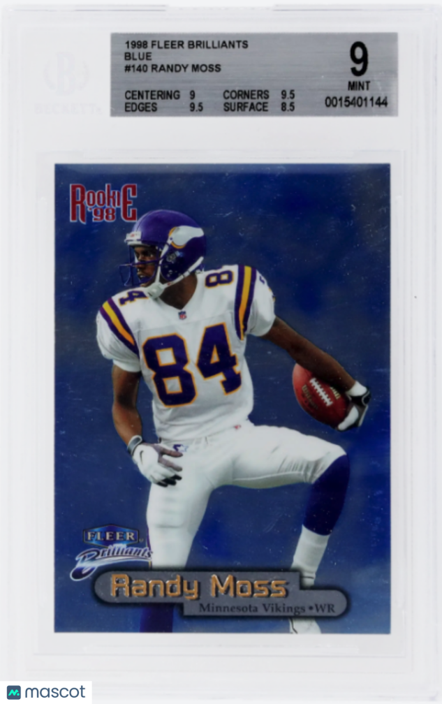 You are purchasing a 1998 Fleer Brilliants Blue Randy Moss #140 BGS 9. You will receive the exact item in the photographs. Thank you for looking.