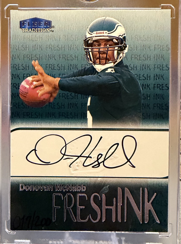 You are purchasing a 1999 Fleer Tradition Donovan Mcnabb Fresh Ink Autograph #17/200. Upon purchase you will receive the exact card pictured. Thanks!