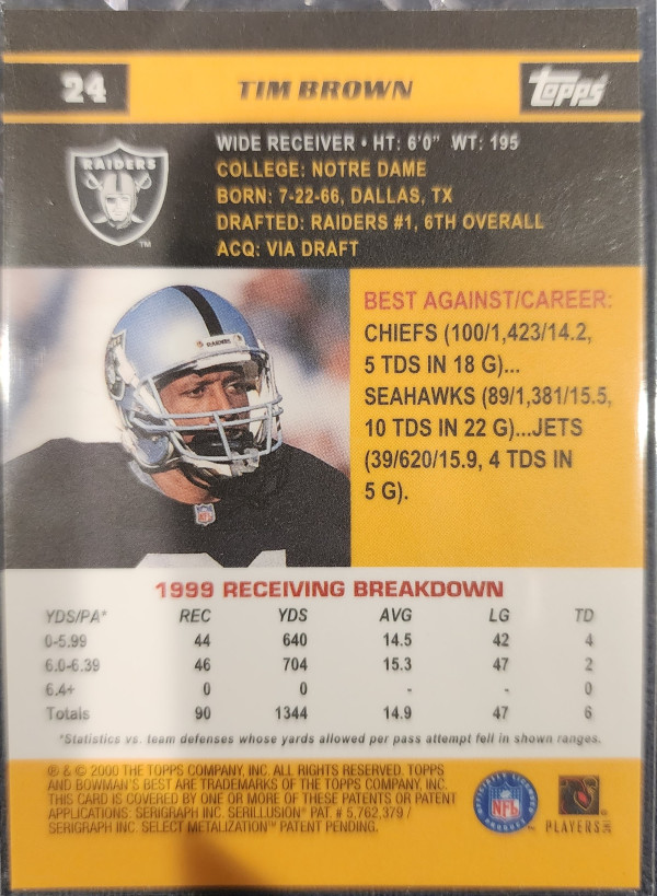 2000 Topps Finest Tim Brown Refractor