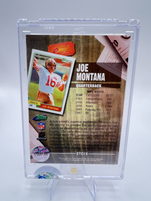 2002 ETopps Classic Football Joe Montana Print Run 3000 San Francisco 49ers