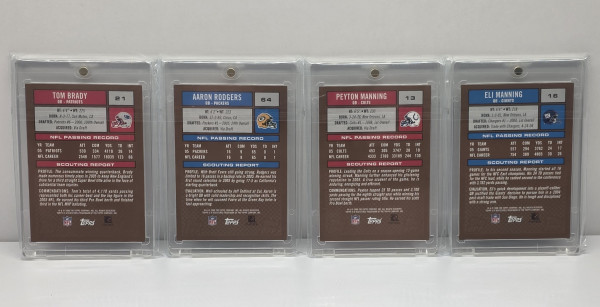 This lot features four of the greatest quarterbacks to ever play the game from the popular 2006 Topps Draft Picks & Prospects football set. Perfect for any collector of future Hall of Famers or those looking to complete a high-end veteran base set.