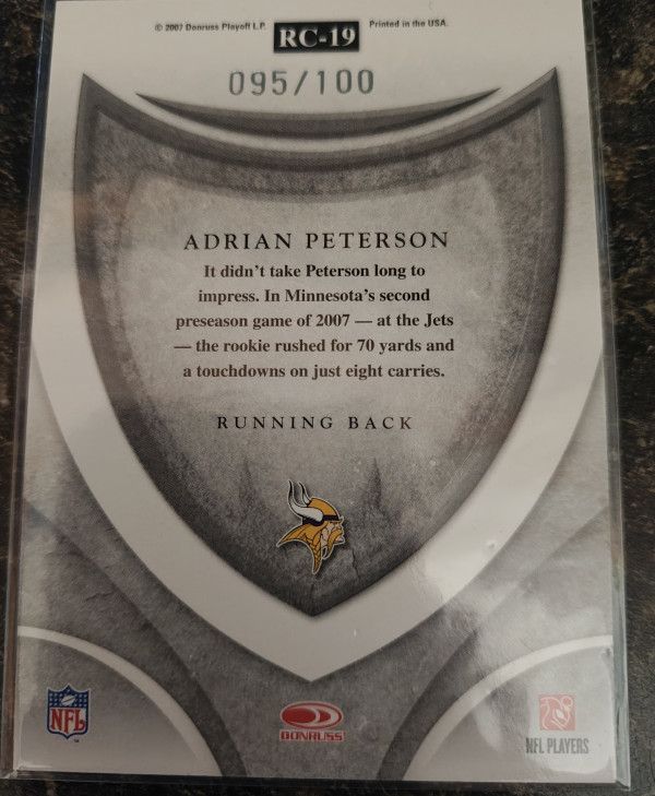 2007 Leaf Rookies & Stars Adrian Peterson Crusade Green 095 /100.