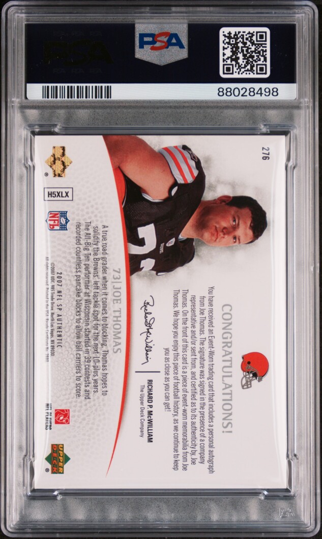 2007 Sp Authentic Joe Thomas Signed Patch PSA 8