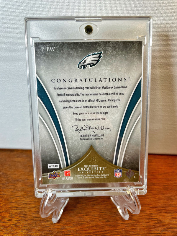This is (1) 2009 Upper Deck Exquisite BRIAN WESTBROOK Game-Used Patch #/75 Eagles #P-BW. Thank you for checking out my listing!