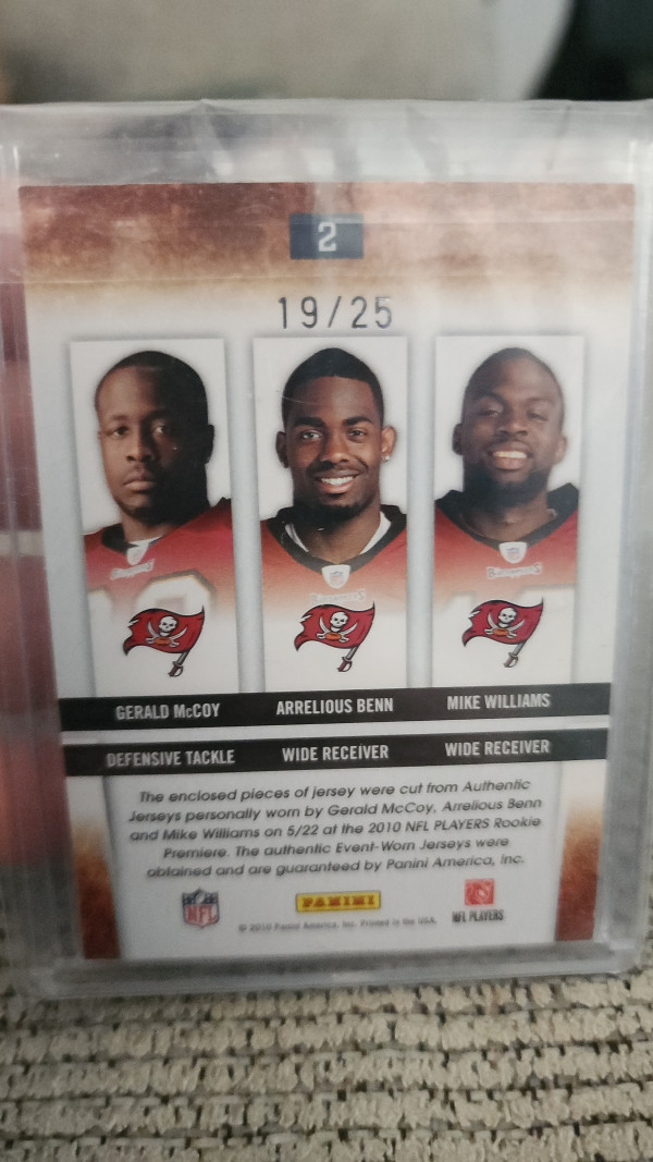 2010 Panini Gridiron Gear Mike Williams Gerald McCoy Arrelious Benn #19/25