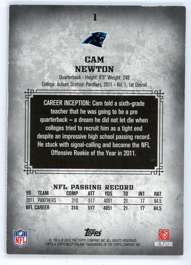 2012 Topps Inception #1 Cam Newton Blue /252 ***VF-NM***