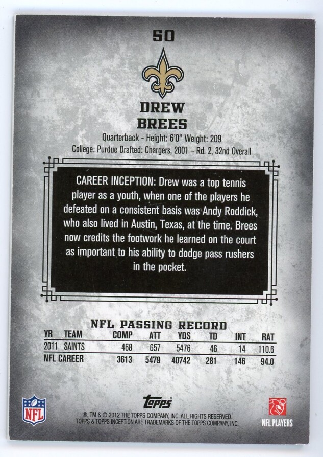 2012 Topps Inception #50 Drew Brees Blue /252 ***VF-NM***