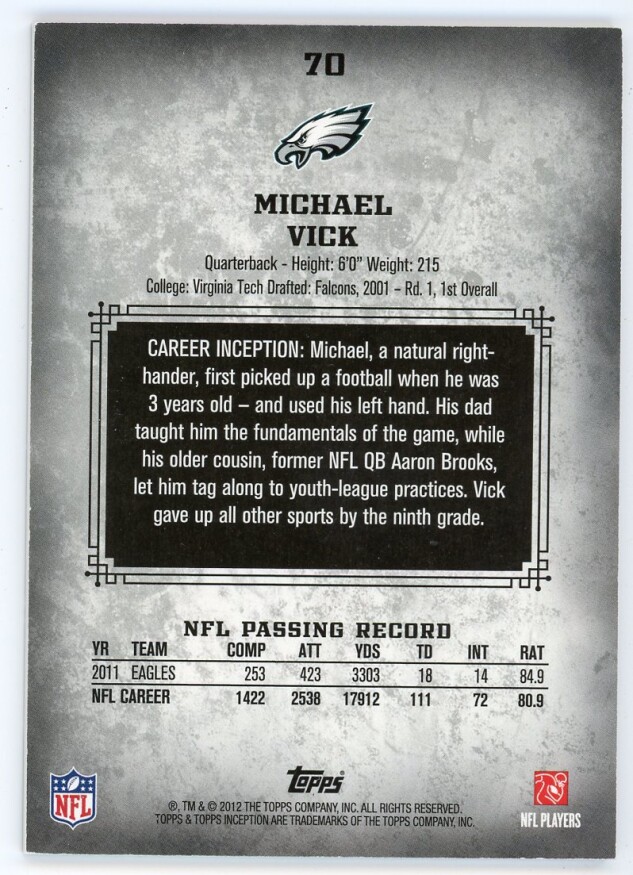 2012 Topps Inception #70 Michael Vick Blue /252 ***VF-NM***