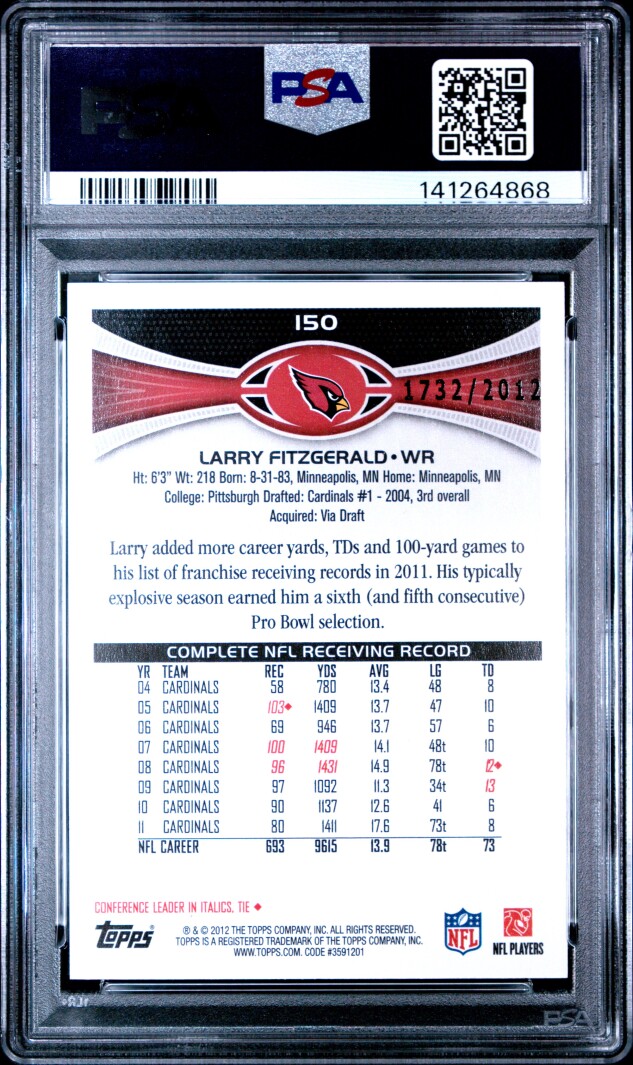 You are purchasing a 2012 Topps Larry Fitzgerald Gold PSA 9. You will receive the exact item in the photographs. Thank you for looking.
