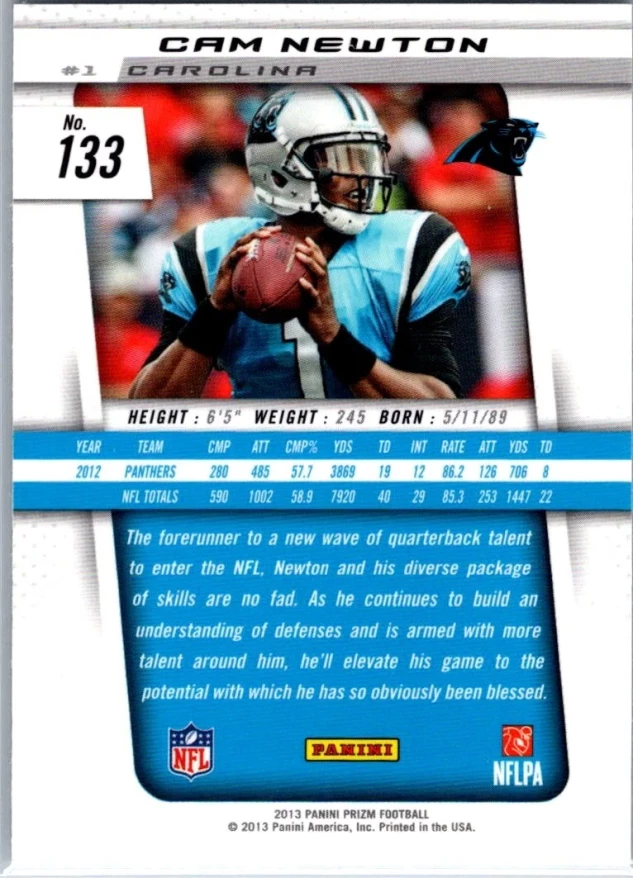 In 2013 Cam Newton played for the Carolina Panthers.
