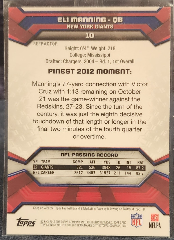 2013 Topps Finest Eli Manning Refractor