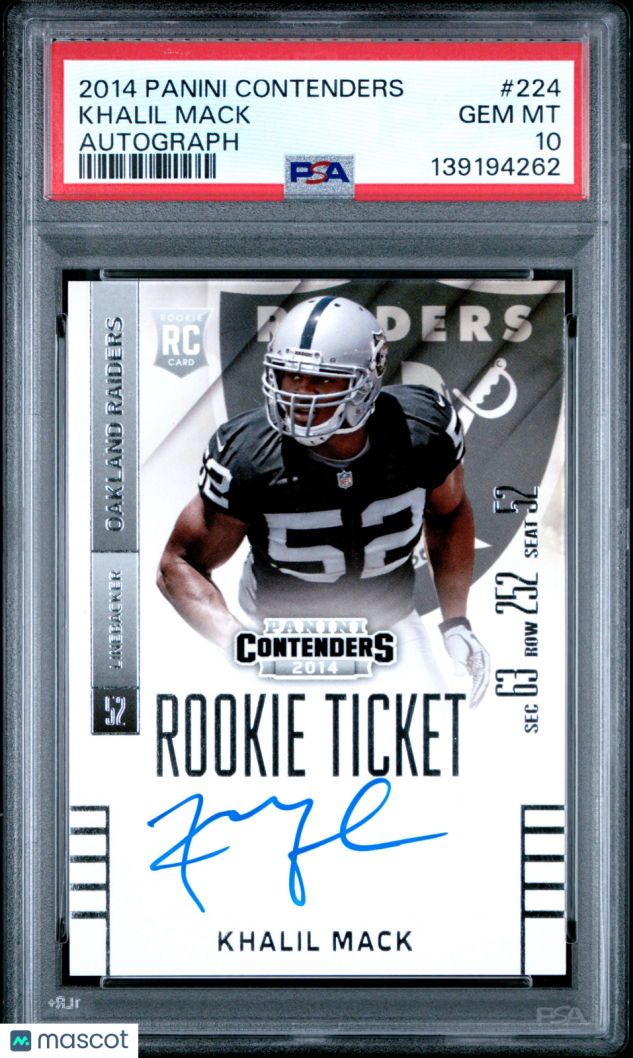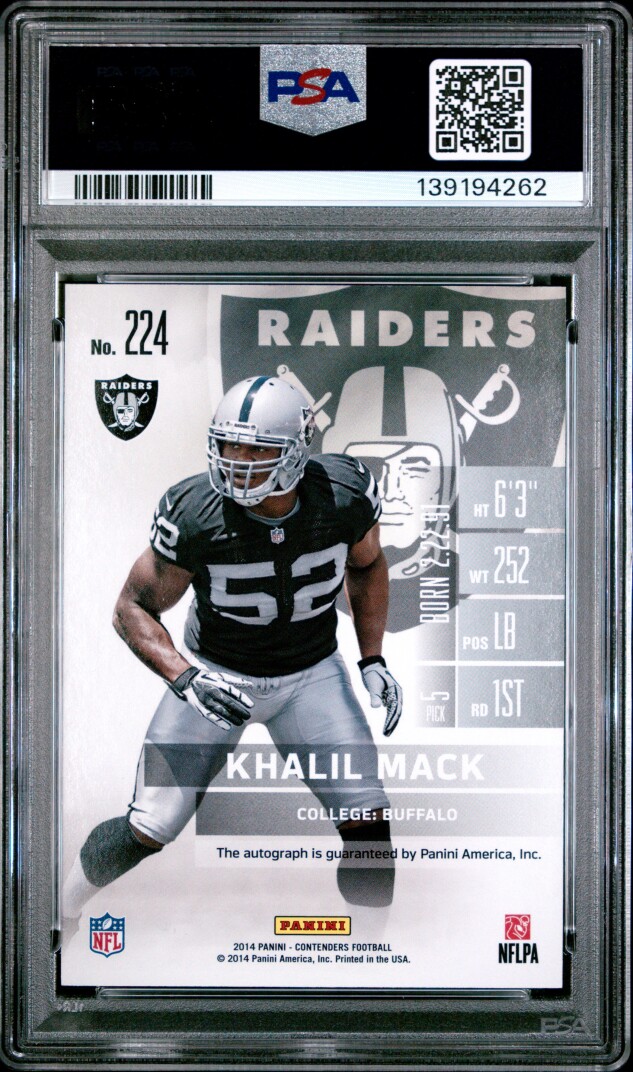 You are purchasing a 2014 Panini Contenders Khalil Mack AutographAuto PSA 10. You will receive the exact item in the photographs. Thank you for looking.