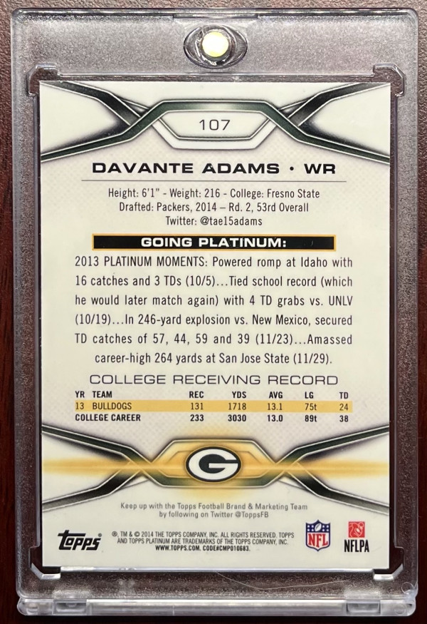 2014 Topps Platinum Davante Adams Orange Refractor RC