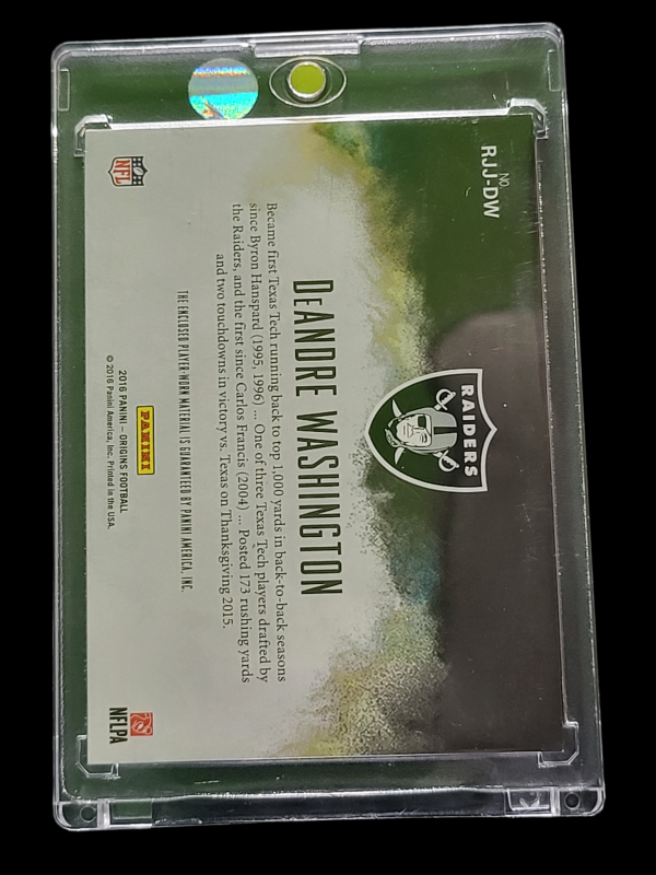 You are purchasing a 2016 Panini Origins DeAndre Washington #RJJ-DW One of One Player-Worn Material NFL Shield Patch RC. You will receive the exact item in the photographs. Thank you for looking.