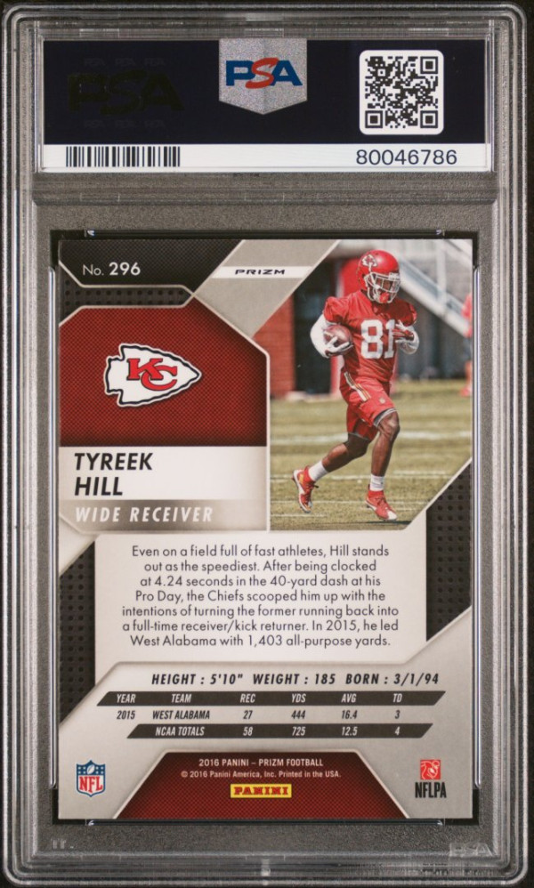 Thanks for your looking at my listing 2016 Panini Prizm Tyreek Hill Prizm PSA 9 RC. Let me know if you have any questions!