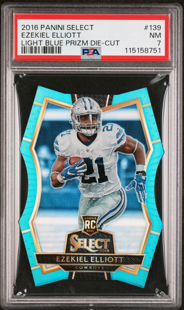 2016 Panini Select #139 Ezekiel Elliott Light Blue Prizm Die-Cut PSA 7