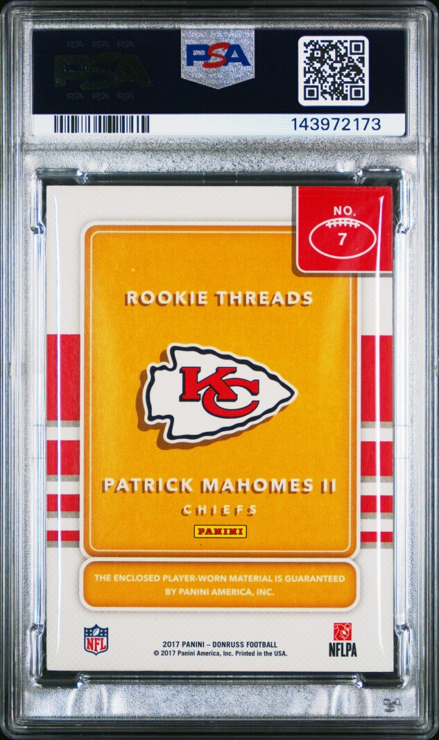 You are purchasing a 2017 Panini Donruss Rookie Threads Patrick Mahomes II Red PSA 9. You will receive the exact item in the photographs. Thank you for looking.