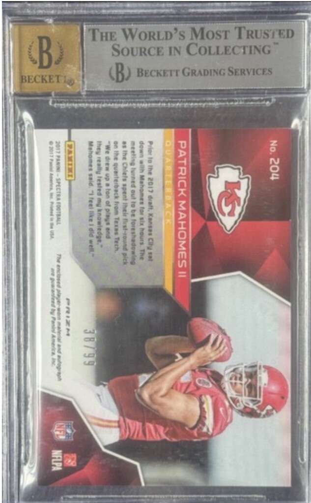 2017 Patrick Mahomes Panini Spectra Jersey Autograph Rookie /99