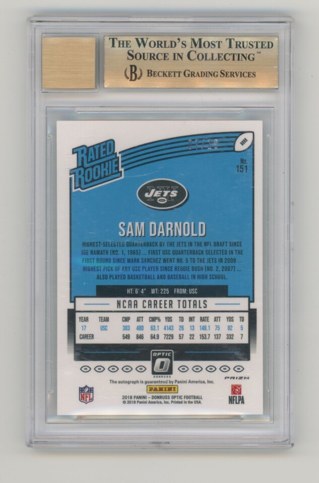 You are purchasing a Sam Darnold #151 BGS 9.5 Auto 10. You will receive the exact item in the photographs. Thank you for looking.