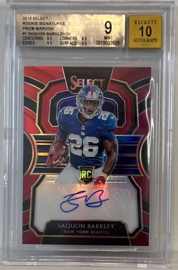 2018 Select šŸˆšŸ”„Saquon Barkley RC Rookie Maroon Auto #19/20 SSP BGS 9 / Auto 10
