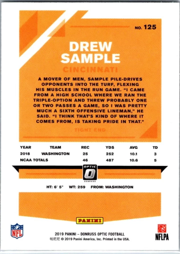 In 2019 Drew Sample played for the Cincinnati Bengals.