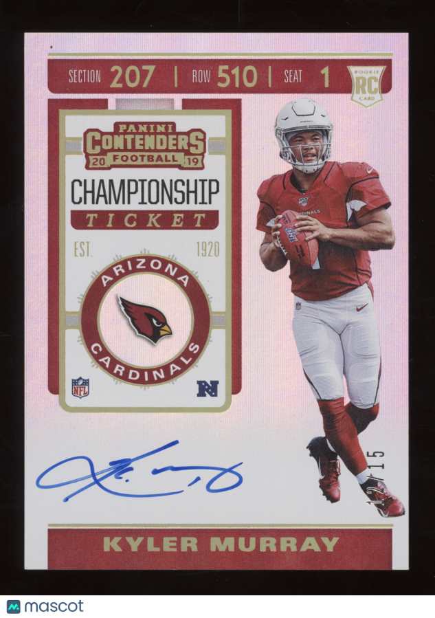You are purchasing a 2019 Panini Contenders Optic Football Championship Ticket Kyler Murray #101 Autograph Red RC 12/15. You will receive the exact item in the photographs. Thank you for looking.