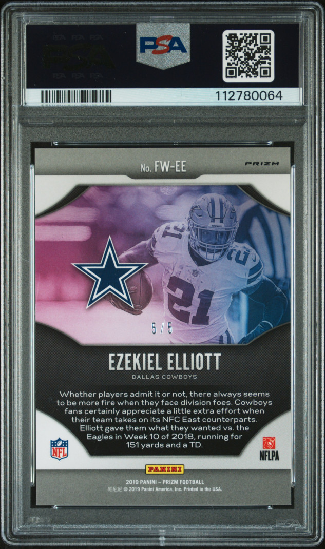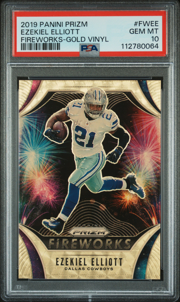 2019 Panini Prizm Fireworks Ezekiel Elliott Fireworks-Gold Vinyl. PSA10 Dallas Cowboys. 5/5
