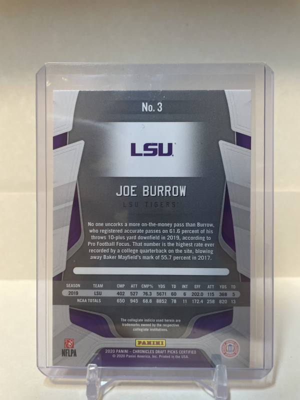 2020 Chronicle Certified Blue/Purple Joe Burrow Rookie